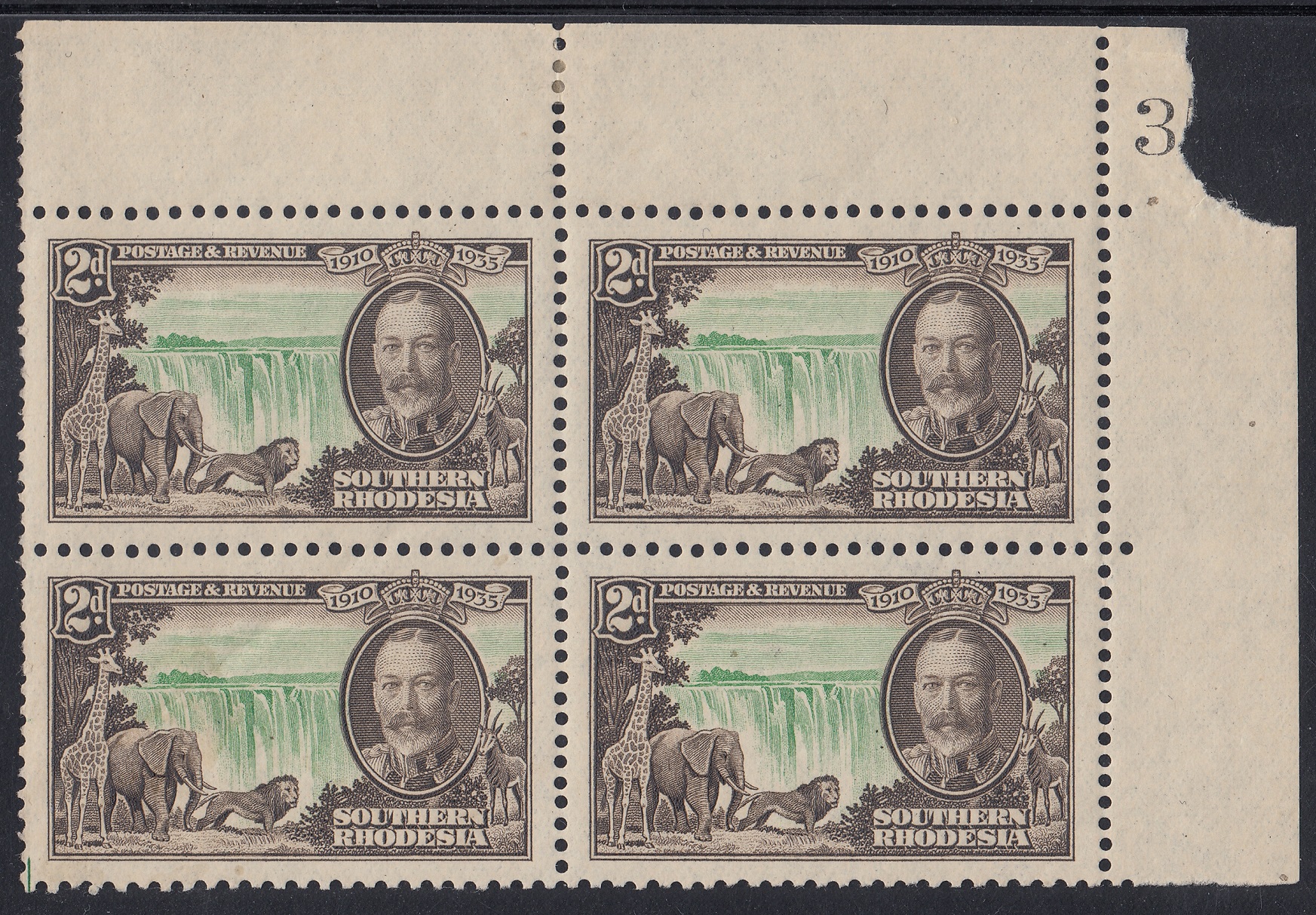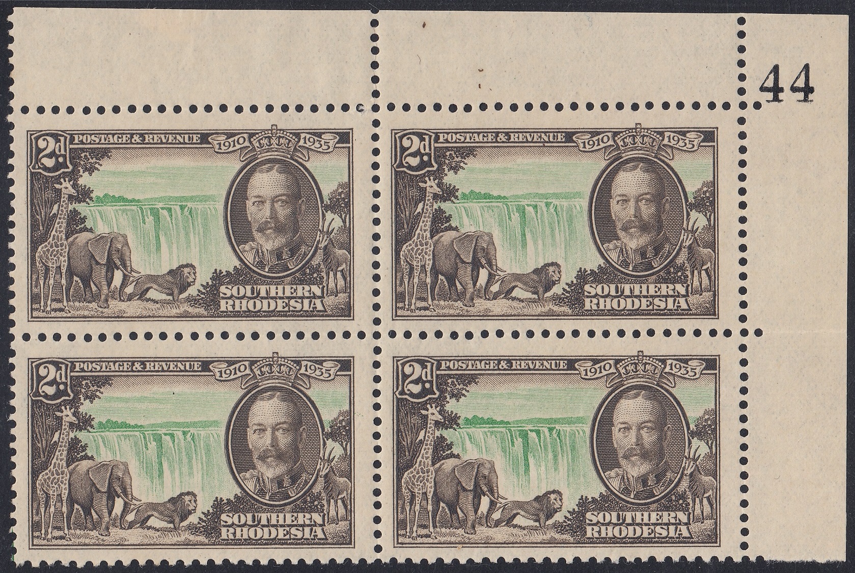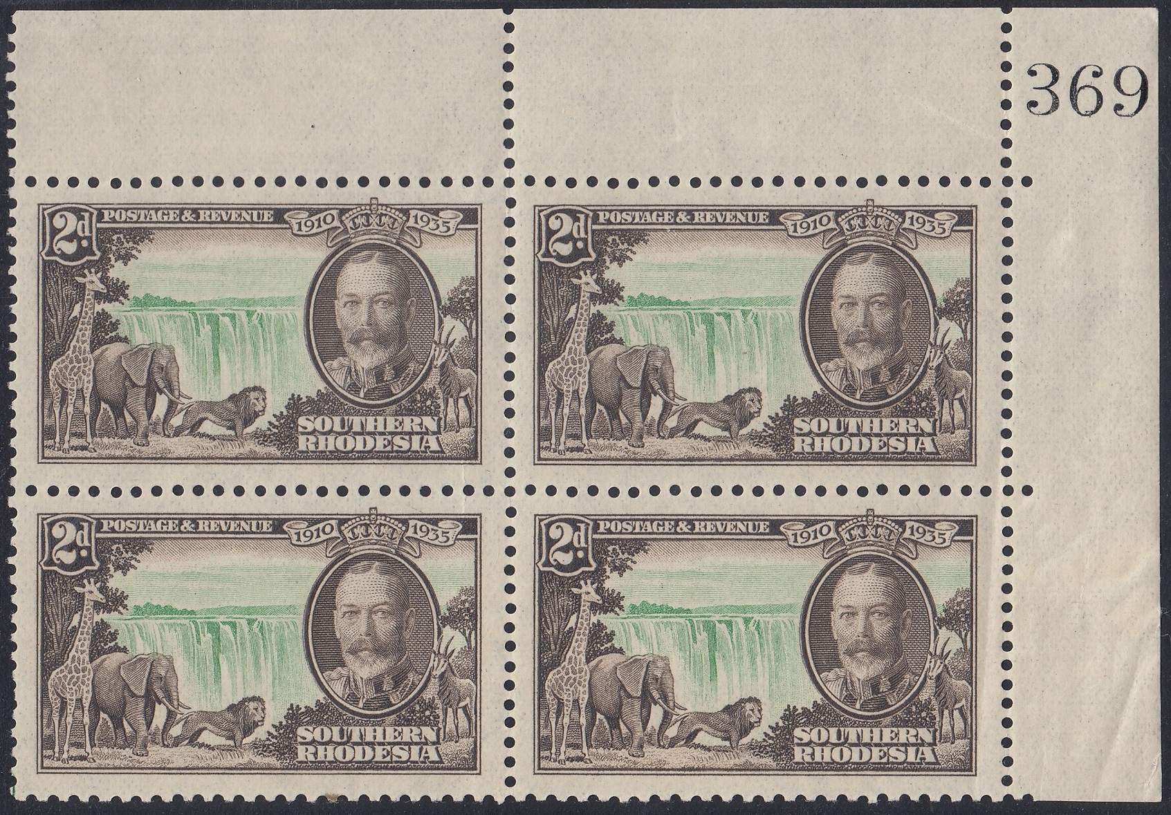 Southern Rhodesia Southern Rhodesia Philately: 1935 George V Silver Jubilee – 2d Victoria Falls thedigitalphilatelist 06/05/1935 Details Designer: Printer: Waterlow & Sons Ltd, London Wall, London, E.C. Process: Recess Paper: Watermark: None Perf: 11 x 12 (comb) Plates: Sheet: Quantity: Sheet Numbers Share this: Share on Facebook (Opens in new window) Facebook Share on X (Opens in new window) X Like this:Like Loading... Related