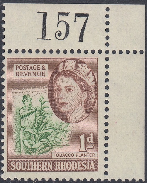 This stamp depicts a tobacco planter. The tobacco industry contributed a significant amount to the country’s foreign earnings. The illustration shows a tobacco planter removing suckers from the tobacco plant.