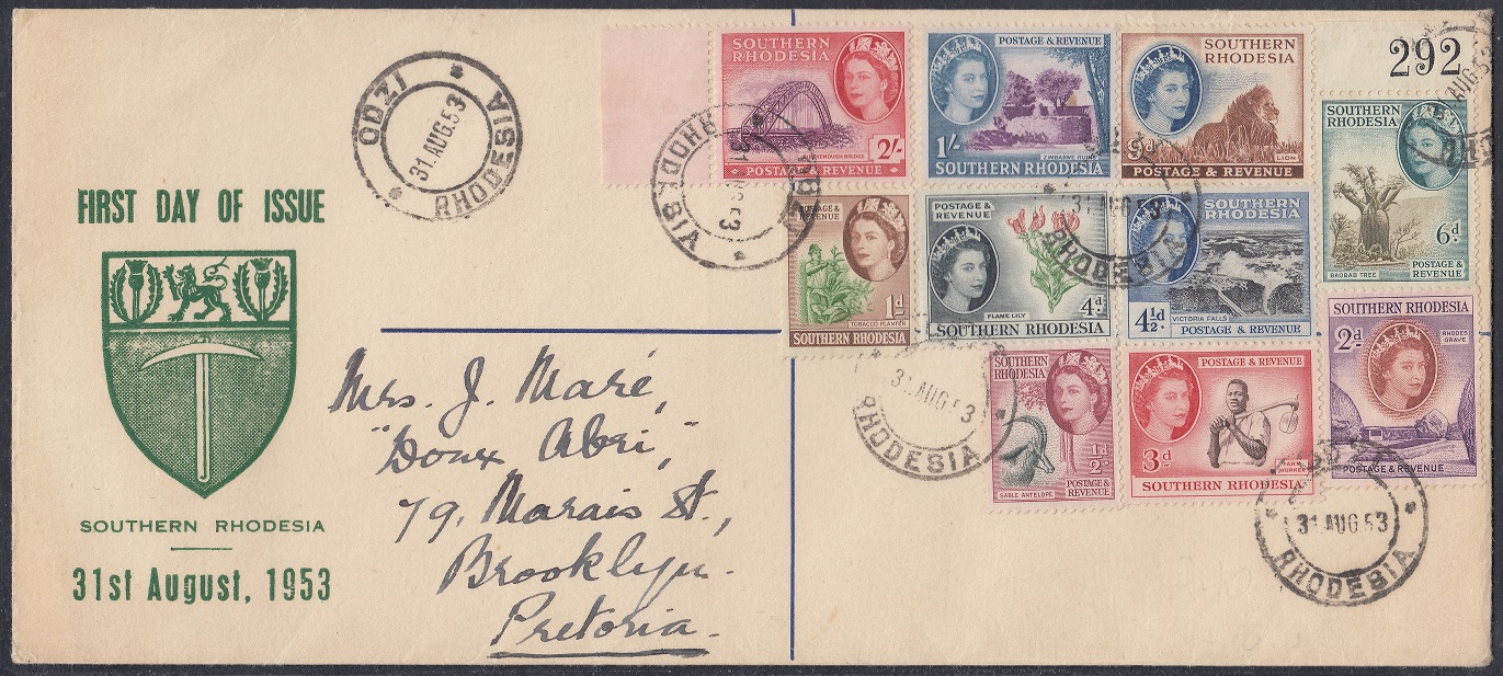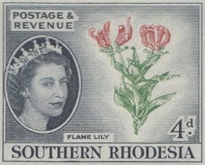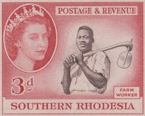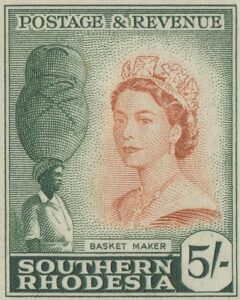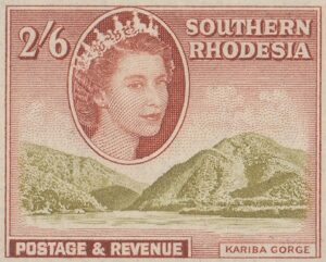 The origin of this set goes back to 1951, when public pressure began to mount for a change in the country’s stamps. People were growing tired of the 2d. and 3d. ‘Victoria Falls’ denominations and the current set had already been on sale for 13 years. The colours of the current definitive set were, moreover, out of line with the requirements of the Universal Postal Convention. Stocks held by the Principal Distributor of Stamps, however, were sufficient to last until 1953. It was decided that the new issue would be ordered to coincide with this date. A committee consisting of representatives of the Mashonaland and Rhodesia Philatelic Societies, the Controller of the Printing and Stationery Department, the Director of Public Relations and the Assistant Postmaster-General, with the Postmaster-General as Chairman, was appointed to make recommendations to Government in connection with the new designs. With the death of King George VI the designs had to be changed to incorporate a cameo of the new Queen.