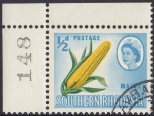 In the corner window of Rhodesia House, looking out on the Strand with contemptuous eyes, is an enormous carved head of a buffalo, probably the only one that can be faced at close quarters without fear of reprisals! The sullen beast shown on the stamp was the subject of a Kodachrome transparency, taken, one imagines, with a telephoto lens. The artist checked other pictures of buffalo for detail, and he has made it clear that this is a very solid, thick-set animal. Its horns sometimes exceed 4 feet in span and measure between 12 and 14 inches across the “palm”. The buffalo is a brave beast, dangerous when cornered and wounded, and often resorting to a cunning move called the “hook”, when it circles round in its own tracks in order to ambush the unwary huntsman.
