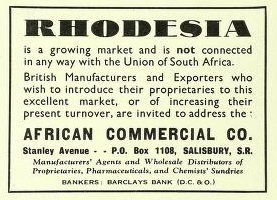 The African Commercial Co. was located on Stanley Avenue, Salisbury. It was a manufacturer’s agent and wholesale distributor of proprieties, pharmaceuticals, and chemist sundries.