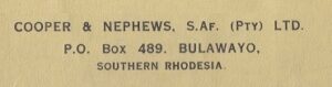 In 1927, J W Shoebotham, Technical Officer for William Cooper & Nephews Ltd became the Rhodesian representative for the company.