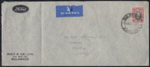Duly & Co Ltd were located in Bulawayo. The business was started by Charles Duly, a fully qualified engineer of 24 years of age who arrived in Bulawayo in 1894. By 1896, he had opened as a Bicycle Dealer in Abercorn St. In 1902, he imported the first car into Rhodesia and by 1911 the Company was appointed as a “Dealer” for Ford Motor Product.