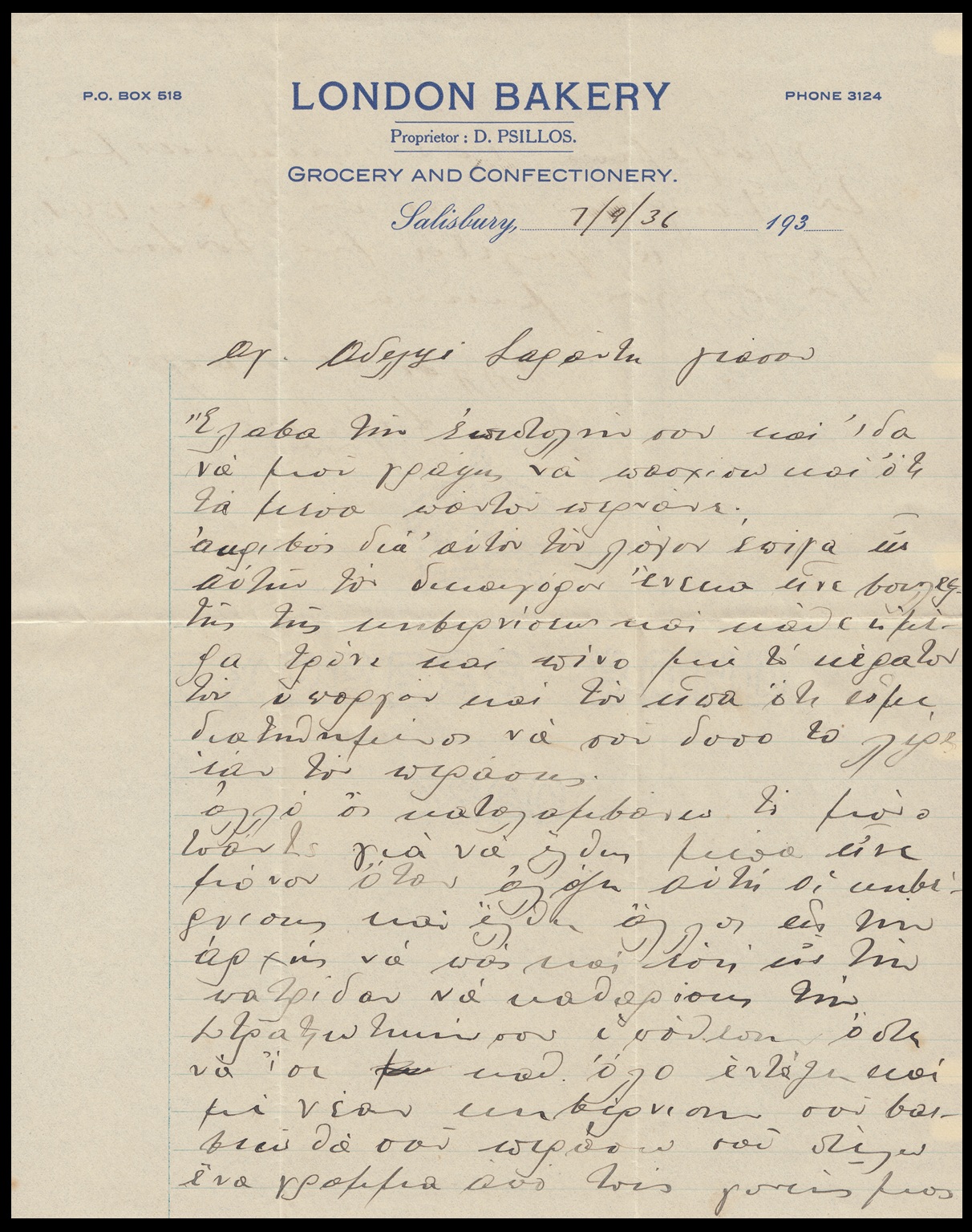 London Bakery was located in Salisbury. The grocery and confectionary business was founded by Demetrios Psillos, who arrived in Southern Rhodesia from Lemnos, Greece, in 1927.
