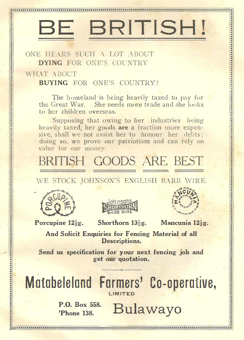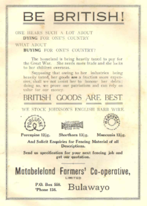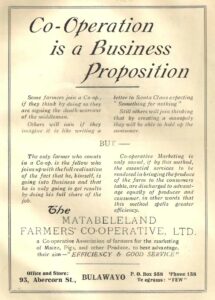 Matabeleland Farmers’ Co-Operative Ltd was located on Abercorn Street and Fife Street, Bulawayo. It was registered under the Co-Operatives Company Act No.34 of 1925 but appears to have existed as early as 1922.