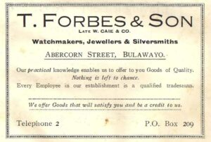 T Forbes & Son was a watchmaker, Jeweller and Silversmith business located on Abercorn Street, Bulawayo.