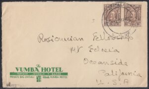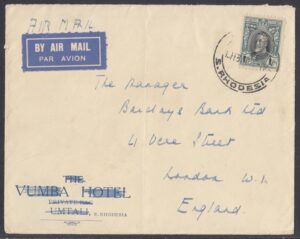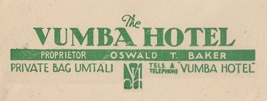 The Vumba Hotel was located in the Vumba mountains. The proprietor was Oswald Trevor Baker. Baker was the Mayor of Umtali from 1929 to 1932 and ran the hotel from the 1920s to 1930s.