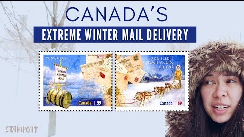 Lets have a look at these beautiful Canadian stamps commemorating two unique mail delivery methods for the cold Canadian winters of the past: Barrel Mail and Sled Dog mail. The Magdalen Islands on Canada’s East coast launched their own version of a message in a bottle through a Ponchon barrel one 1910 winter when a broken telegraph cable left them unable to communicate with the outside world. And on the West coast the practice of sled dog mail continues to this day with the Gold Rush Trail sled dog mail run.