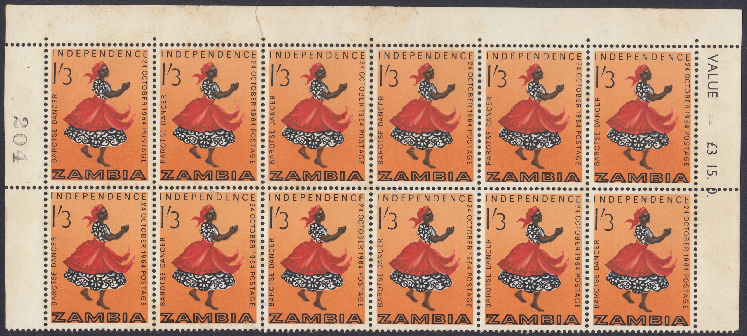 The 1/3d depicts a Barotse woman dancing the traditional handclap of welcome.