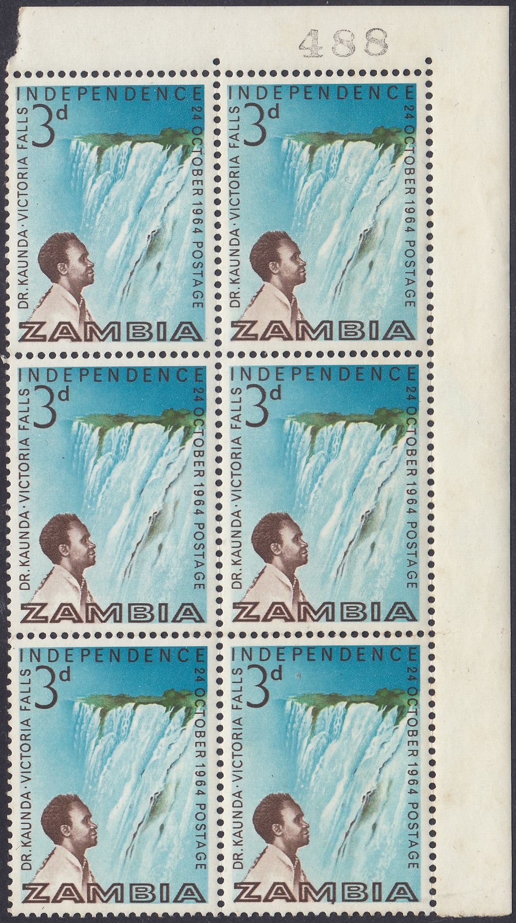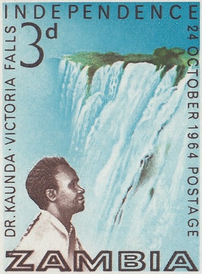 The 3d stamp is made of a composite photographic image of President Kaunda and an image of the eastern cataract of Victoria Falls.