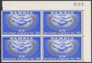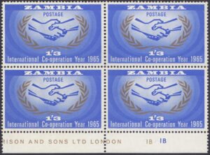 The stamp features the International Co-operation Year symbol with ‘Peace and Progress through Co-operation.’
