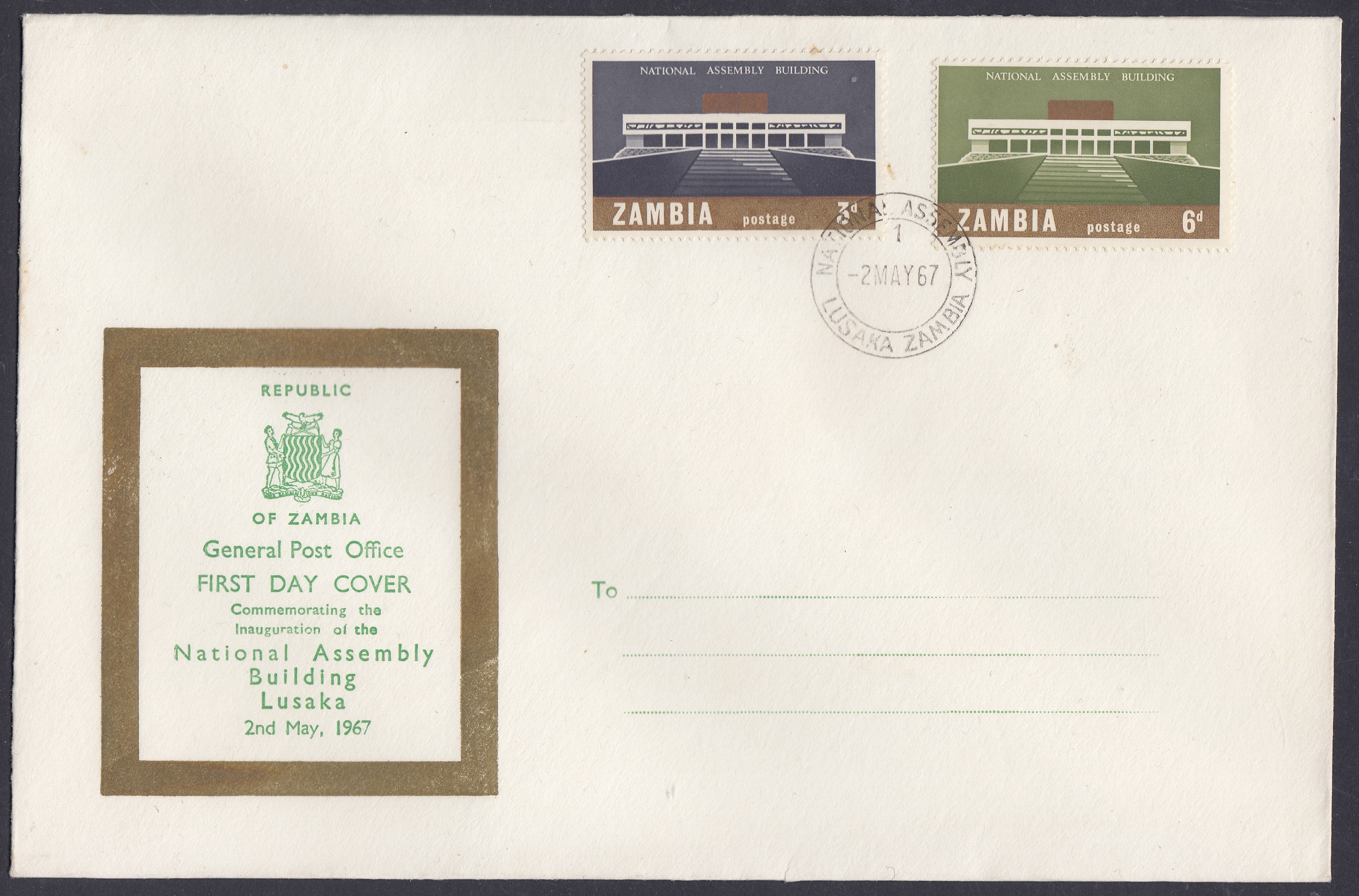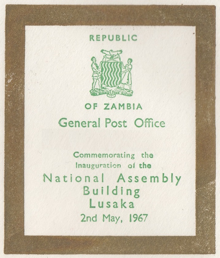 - An Official First Day Cover postmarked National Assembly, Lusaka