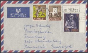 Half a sheet was purchased by a collector and used on letters posted at the Lusaka and Ridgeway post offices on 11 June 1969. The stamps are cancelled with slogan postmarks: