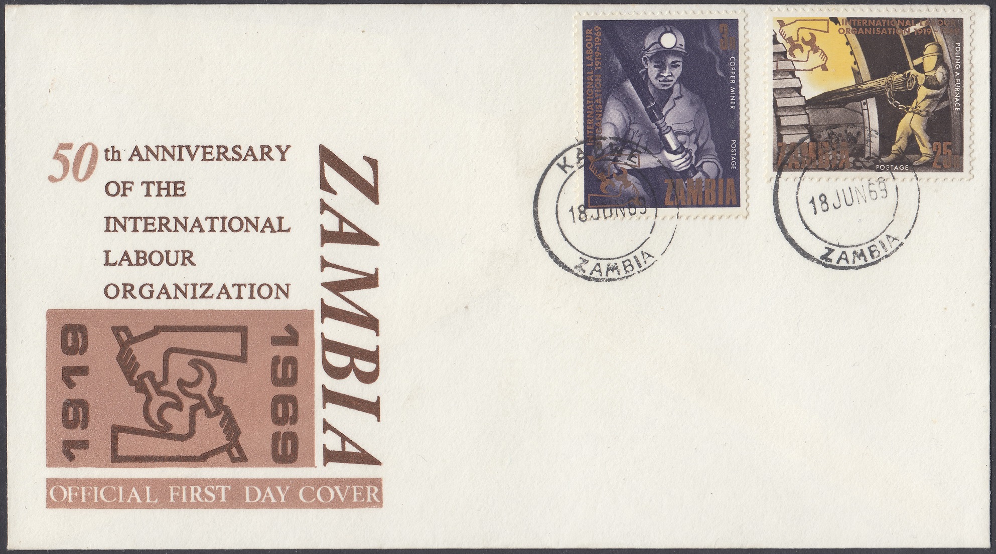 Half a sheet was purchased by a collector and used on letters posted at the Lusaka and Ridgeway post offices on 11 June 1969. The stamps are cancelled with slogan postmarks: