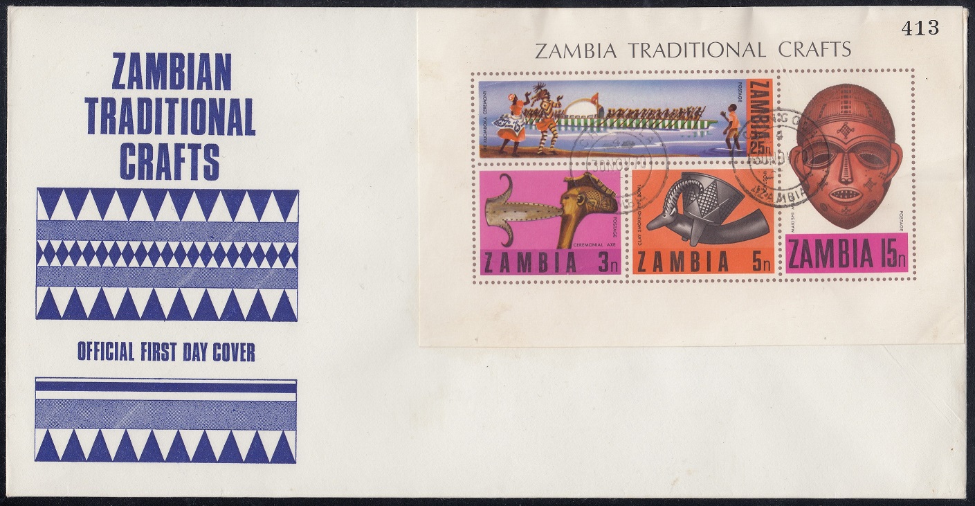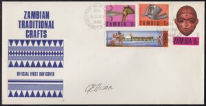The Zambia National Archives contained a copy of an official first day cover postmarked G.P.O. Stamp Bureau/First Day of Issue.