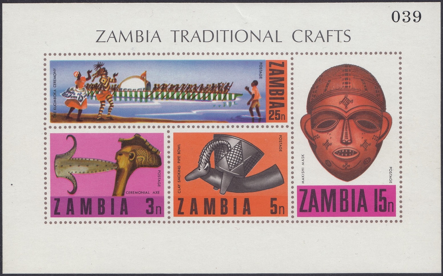 *The miniature sheet was on sale at certain post offices (eg. the parcels office in Lusaka) throughout 1971.