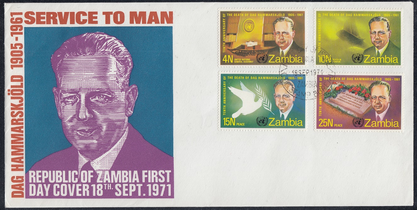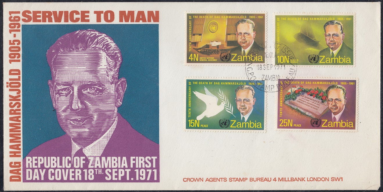 Orders placed in advance with the Stamp Bureau, Ndola, were dispatched on the day prior to the official date of issue. As the stamps from this release were used to frank the envelopes in which the orders were sent, examples exist of all values franked 17 September 1971.