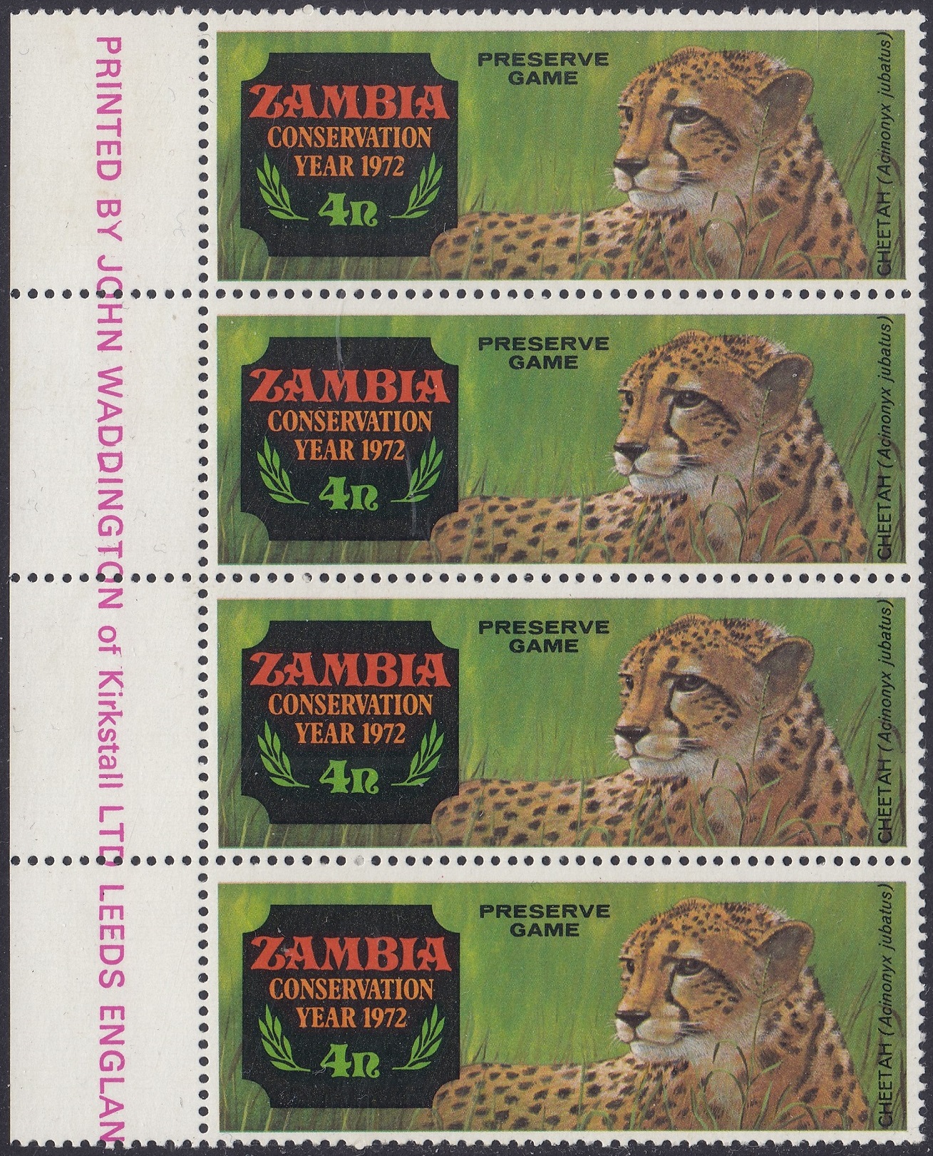Zambia Zambia Philately: 1972 Conservation Year (1st Issue) – 4n Cheetah thedigitalphilatelist 15/03/1972 Details Subject: Cheetah (Acinonyx jubatus) Designer: John Waddington of Kirkstall Ltd, Leeds, England Printer: John Waddington of Kirkstall Ltd, Leeds, England Process: Lithography Paper: Watermark: None Perf: 13.5 Cylinders: Sheet: Quantity: Sheet Numbers Share this: Share on Facebook (Opens in new window) Facebook Share on X (Opens in new window) X Like this:Like Loading... Related