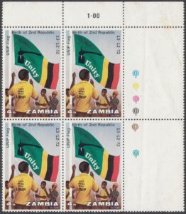 Zambia Philately: 1973 Birth of 2nd Republic – 4n U.N.I.P. Flag