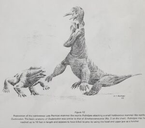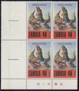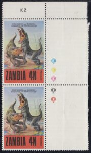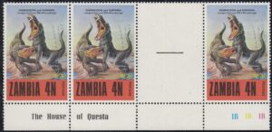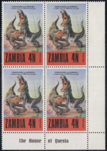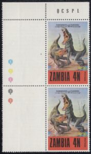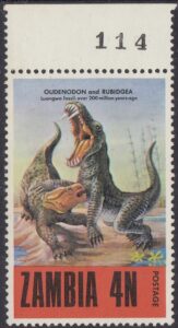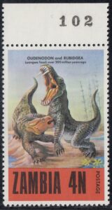 The stamp appears to be based on an illustration by R.T. (Bob) Bakker created for an article by R. W. Crompton published in Optima magazine in 1968.