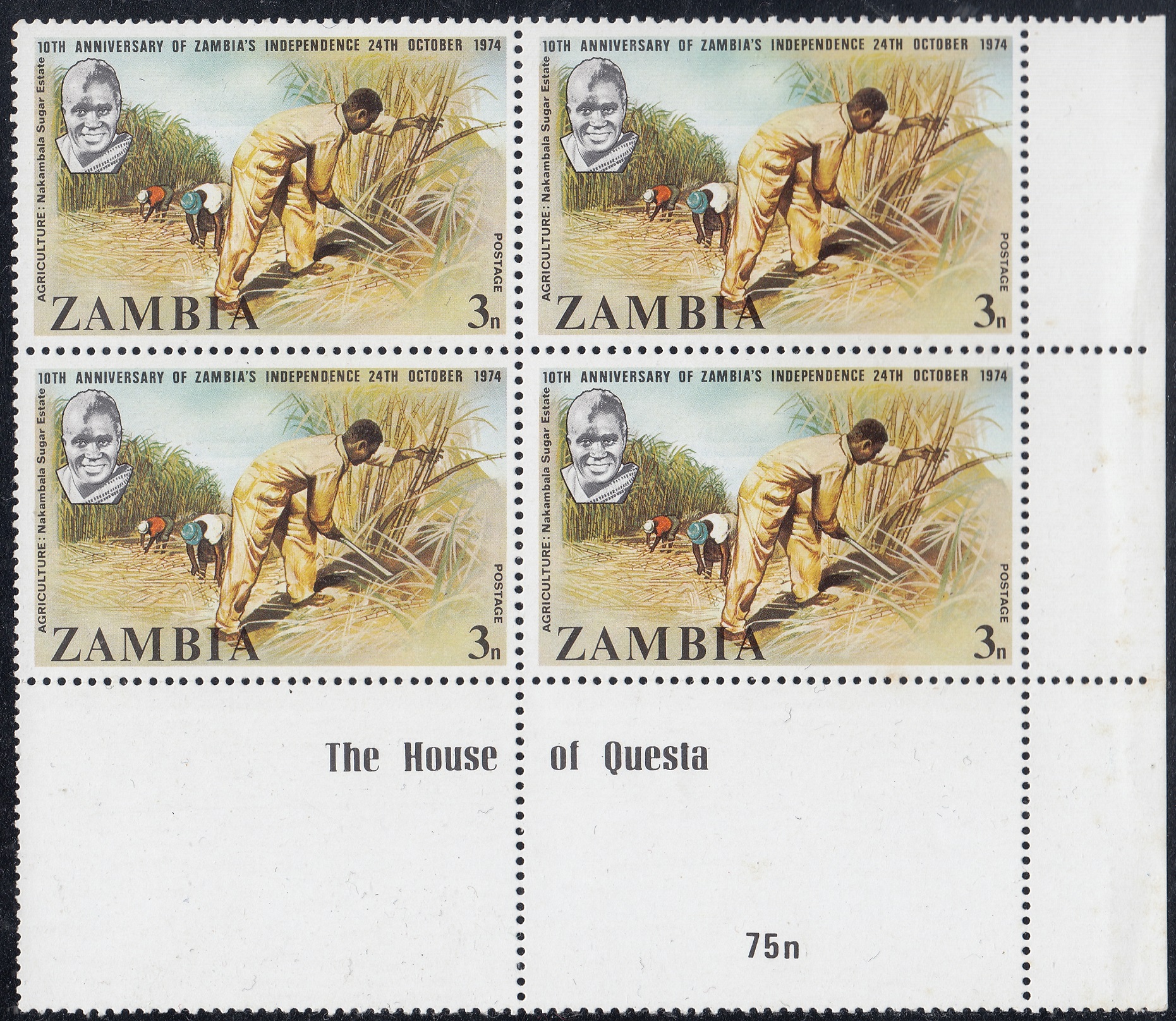 Zambia Philately: 1974 10th Anniversary of Independence – 3n Agriculture: Nakambala Sugar Estate