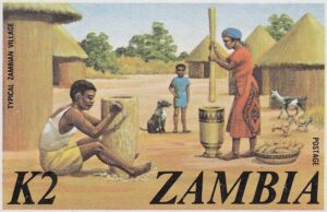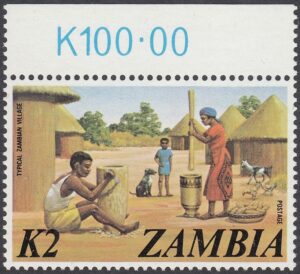 Zambia Zambia Philately: 1975 3rd Definitive Issue – 2K Typical Zambia Village thedigitalphilatelist 03/01/1975 Details Designer: Gabriel Ellison Printer: John Waddington of Kirkstall Ltd, Leeds, England Process: Lithography Paper: Watermark: None Perf: 13 (comb) Cylinders: Sheet: Quantity: