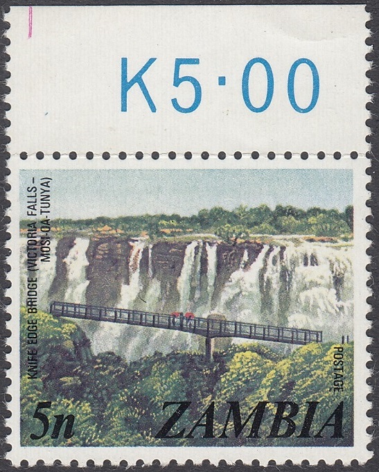 Zambia Philately: 1975 3rd Definitive Issue – 5n Knife Edge Bridge (Victoria Falls – Mosi-Oa-Tunya)
