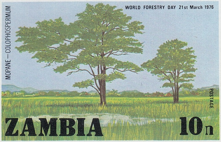 Colophospermum mopane, commonly called mopane, is a tree in the legume family (Fabaceae), that grows in hot, dry, low-lying areas in the far northern parts of southern Africa. The tree only occurs in Africa and is the only species in genus Colophospermum. Its distinctive butterfly-shaped (bifoliate) leaf and thin seed pod make it easy to identify. Together with camel thorn and leadwood, it is one of the three regionally important firewood trees.