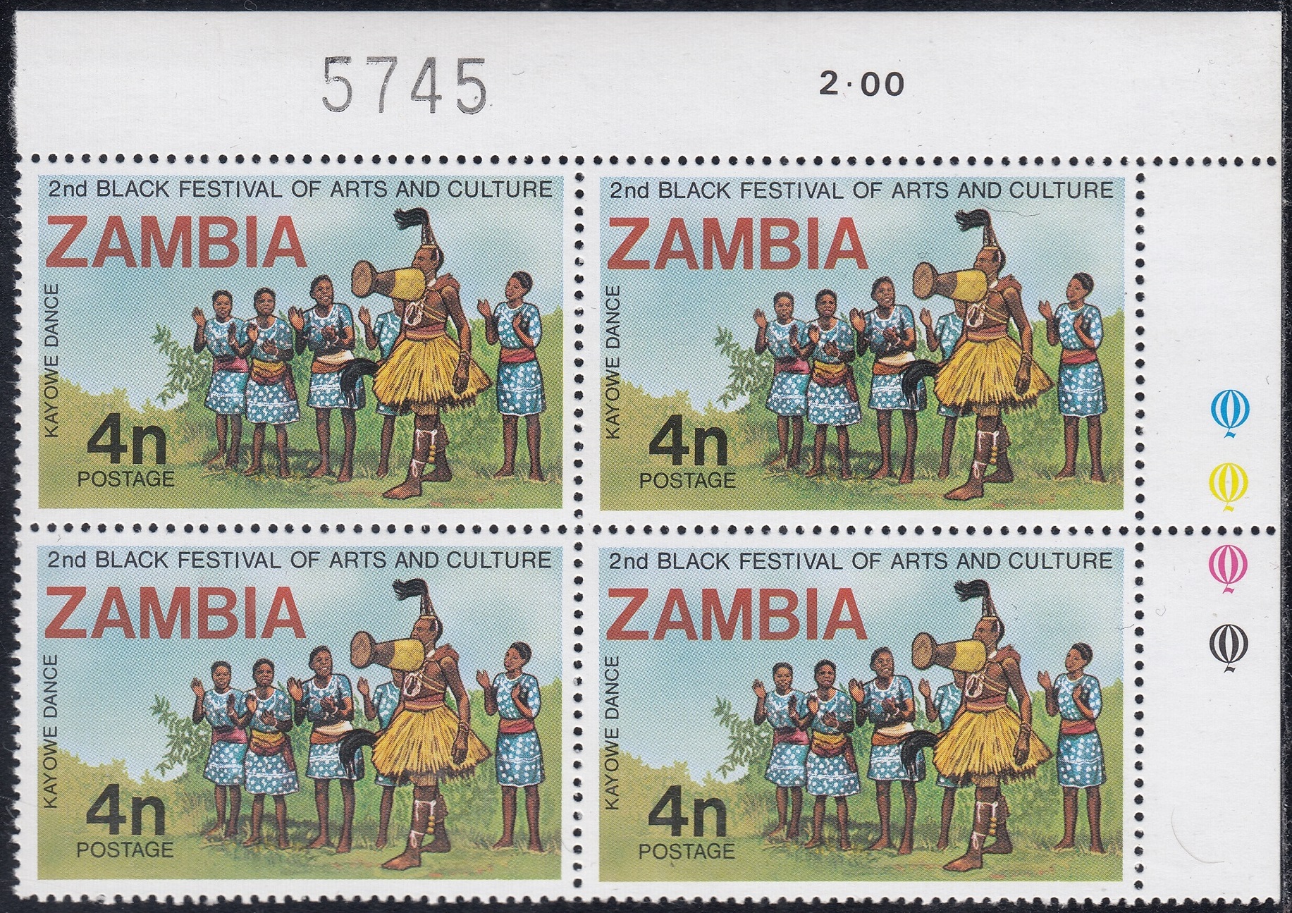 Zambia Philately: 1977 2nd Black and African Festival of Arts and Culture – 4n Kayowe Dance