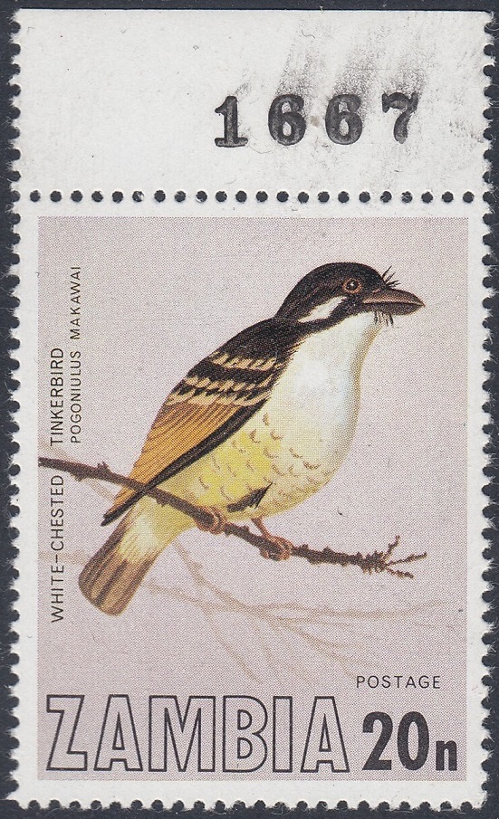 The white-chested tinkerbird (Pogoniulus makawai) is a species of bird in the Lybiidae family (African barbets). It is endemic to the Zambezian Cryptosepalum dry forests of Zambia.