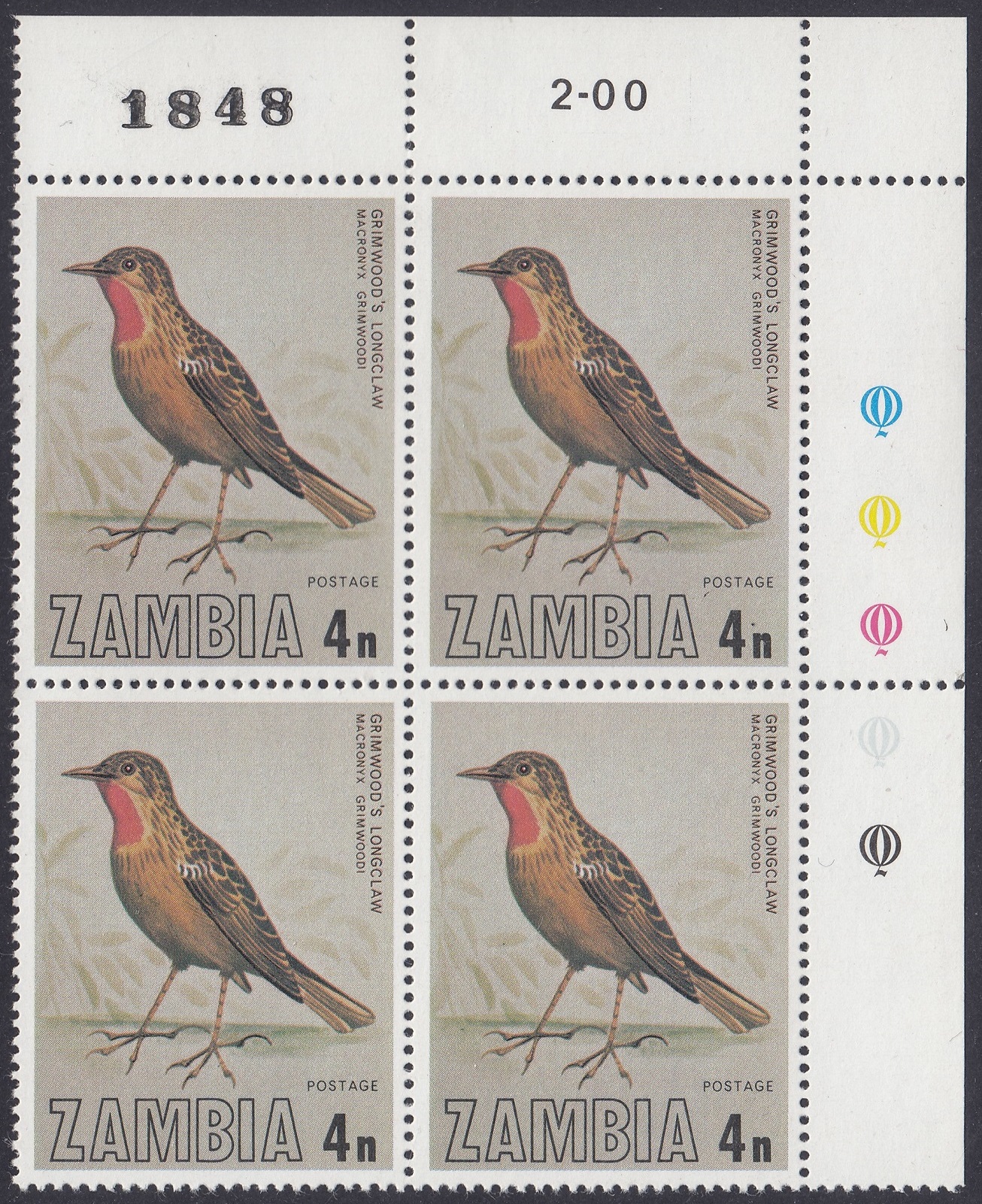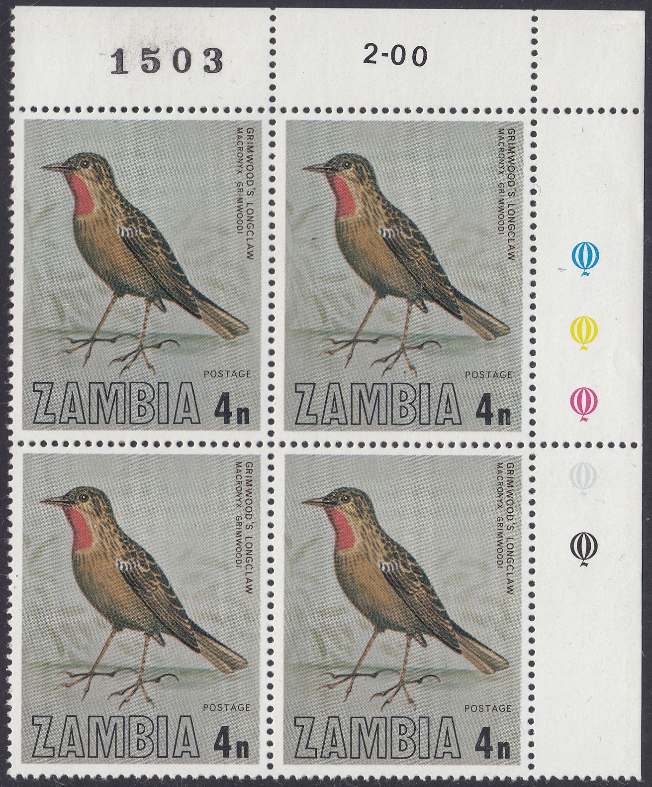 Grimwood’s longclaw (Macronyx grimwoodi) is a species of bird in the family Motacillidae. It is found in Angola, Democratic Republic of the Congo, and Zambia. Its natural habitat is subtropical or tropical seasonally wet or flooded lowland grassland.