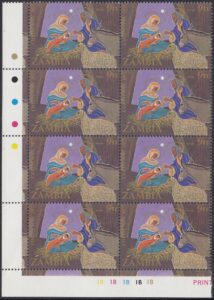 • Cylinders: Printed in panes of four, separated by gutters, and guillotined through vertical gutter and distributed in two vertical panes.