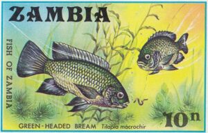 1971 Fish of Zambia – 10n Green-headed Bream (Tilapia macrochir)