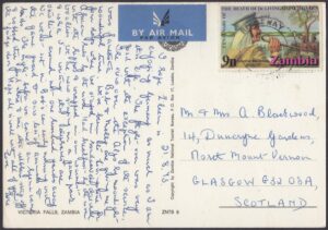 Victoria Falls (also known Mosi-oa-Tunya – The Smoke That Thunders) is a waterfall on the Zambezi River. It is located between Zambia and Rhodesia and is one of the world’s largest waterfalls.