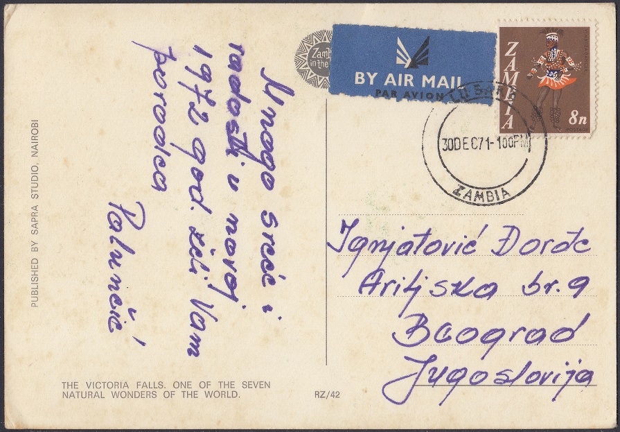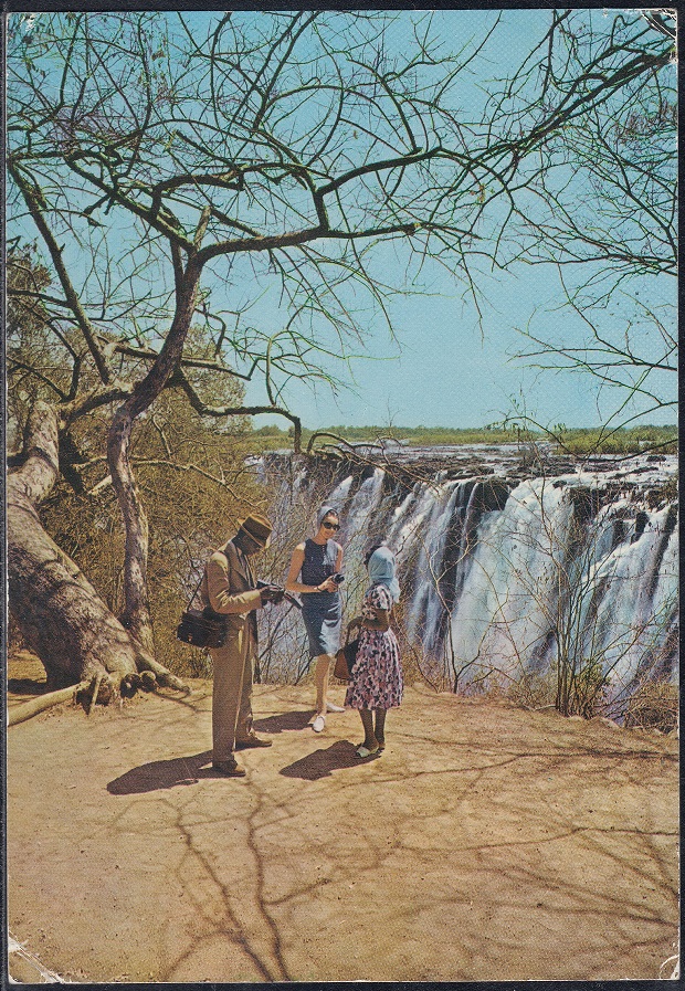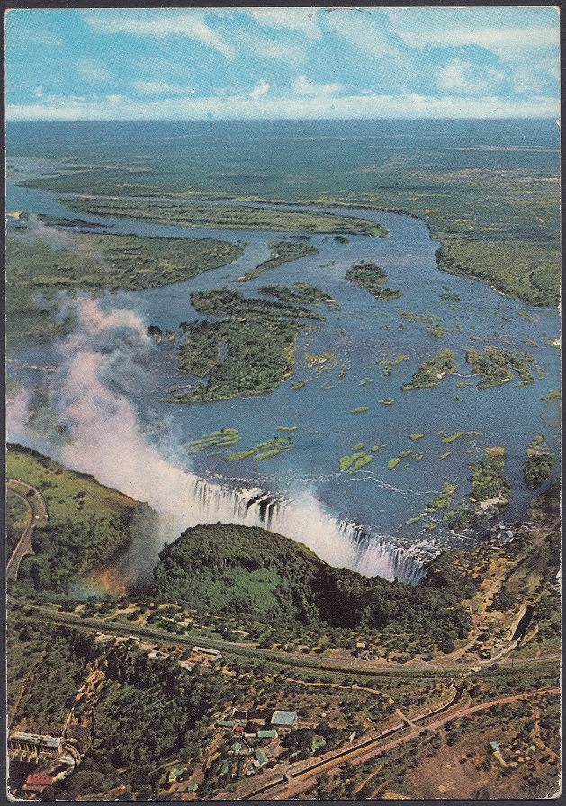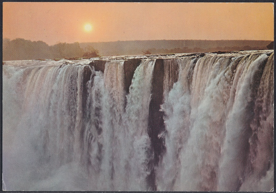 Victoria Falls (also known Mosi-oa-Tunya – The Smoke That Thunders) is a waterfall on the Zambezi River. It is located between Zambia and Rhodesia and is one of the world’s largest waterfalls.